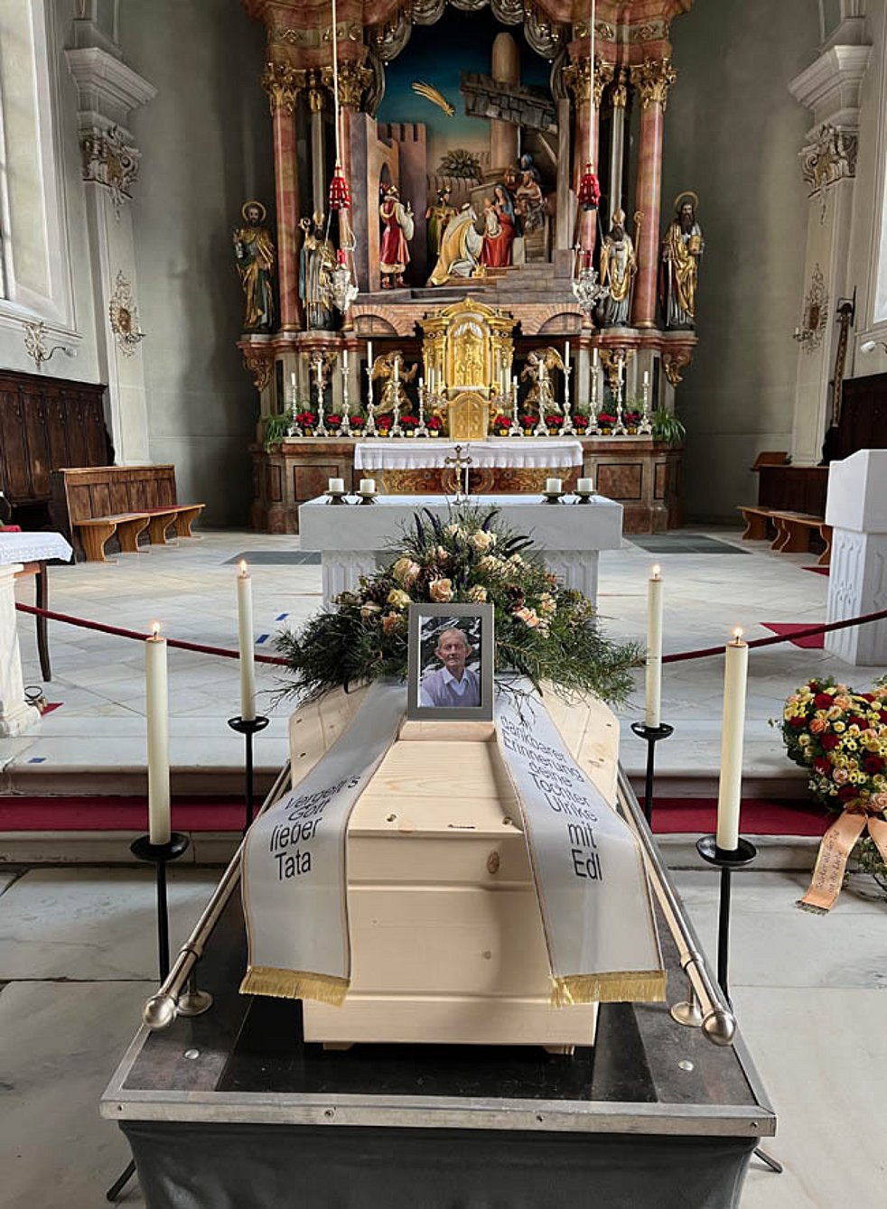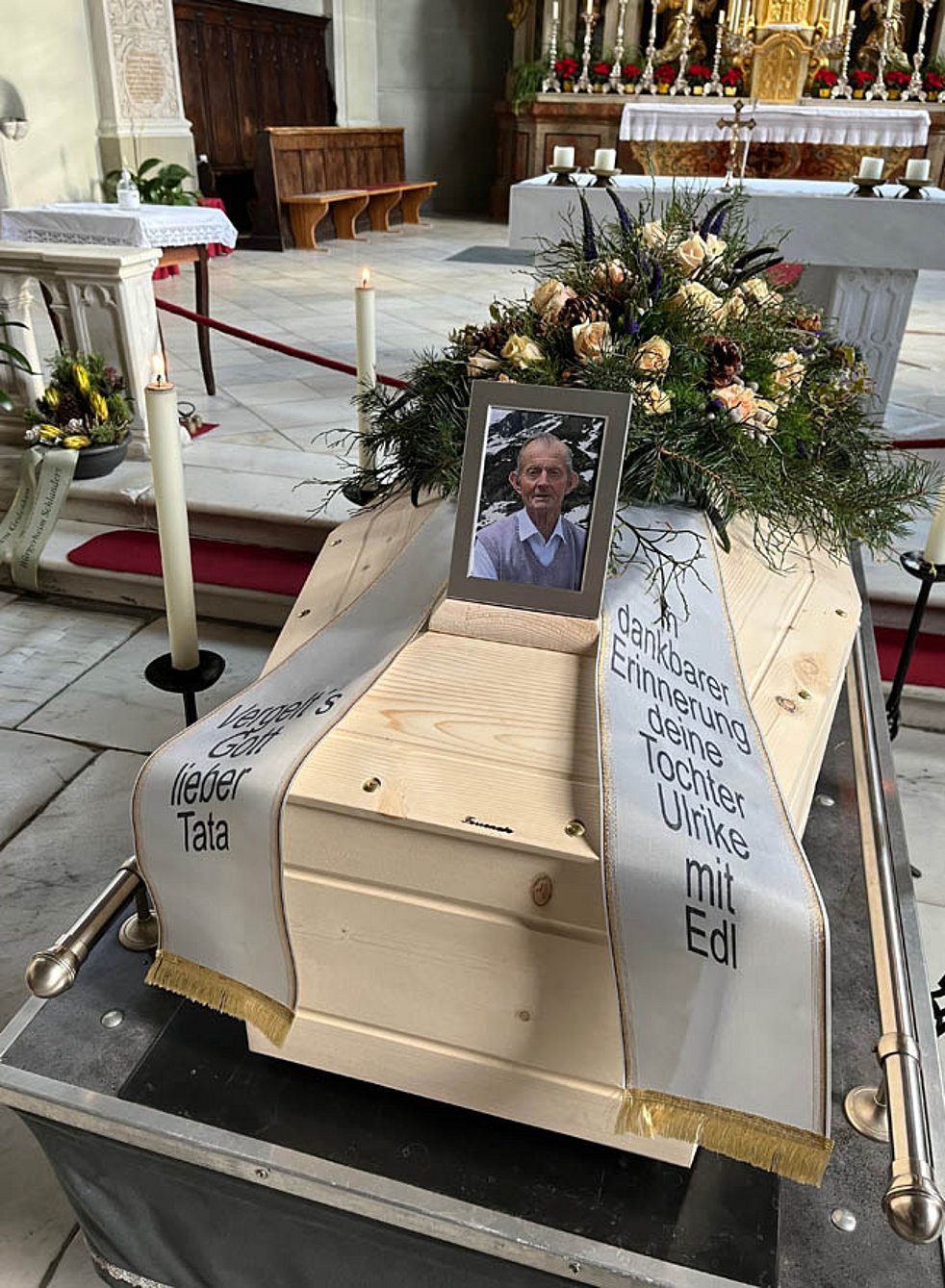 Unser lieber Sepp ist ab Mittwoch in der Leichenkapelle von Schlanders zur persönlichen Verabschiedung aufgebahrt.