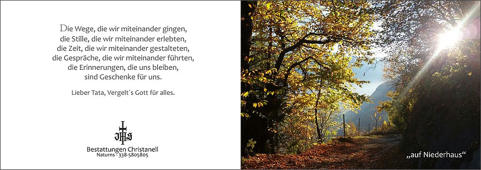 Statt Blumen auf das Grab zu legen, möge man für die Pfarrkirche in Partschins spenden.