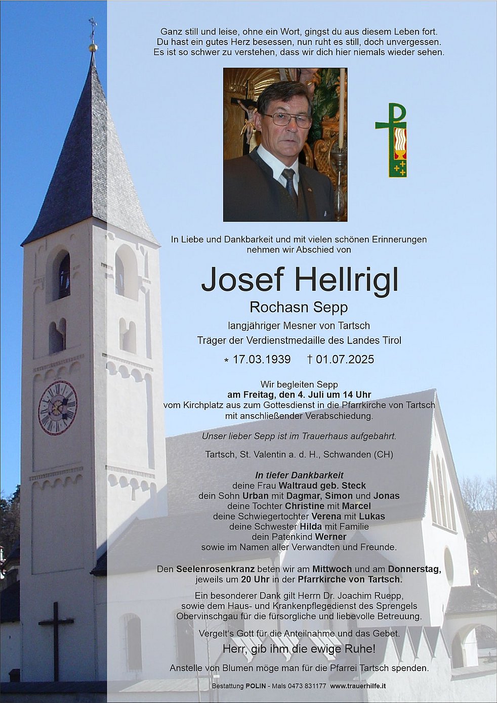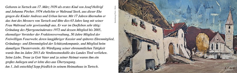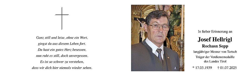 Anstelle von Blumen möge man für die Pfarrei Tartsch spenden.