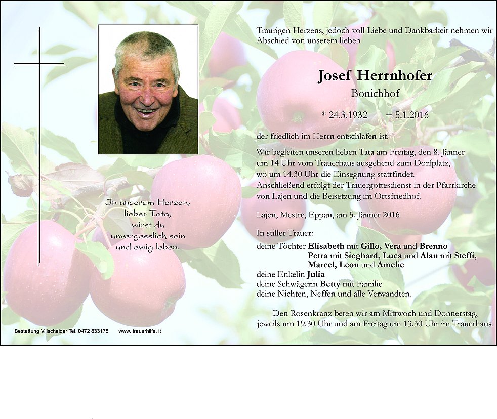 Wir begleiten unseren lieben Tata am Freitag, den 8. Jänner