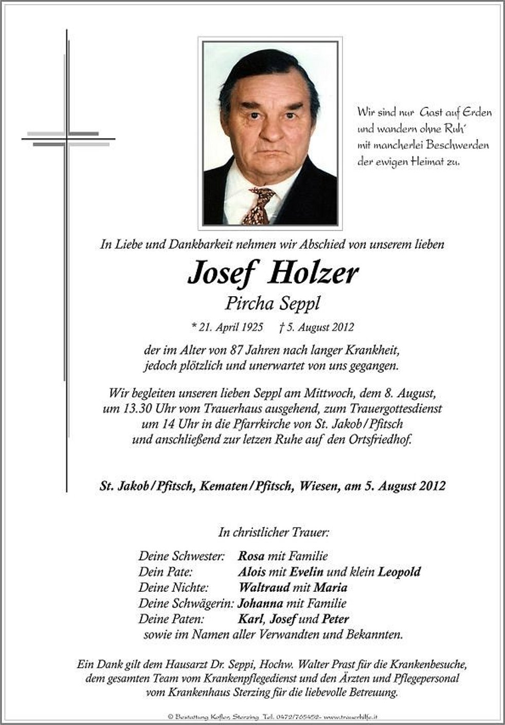 Wir begleiten unseren lieben Seppl am Mittwoch, dem 8. August, um 13.30 Uhr