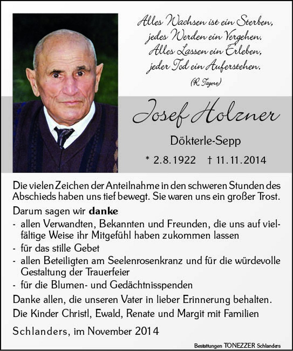 Am Donnerstag, 13. November, um 14 Uhr feiern wir den Begräbnisgottesdienst in der Pfarrkirche von Schlanders.