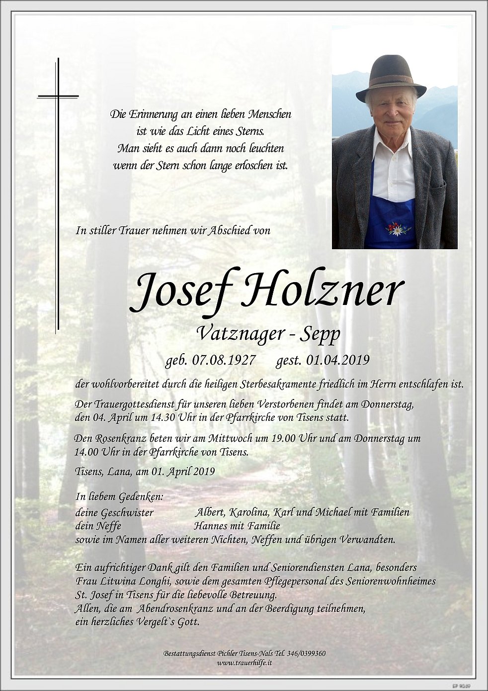 Begräbnisgottesdienst: 05.04. - 14:30 Uhr Tisens