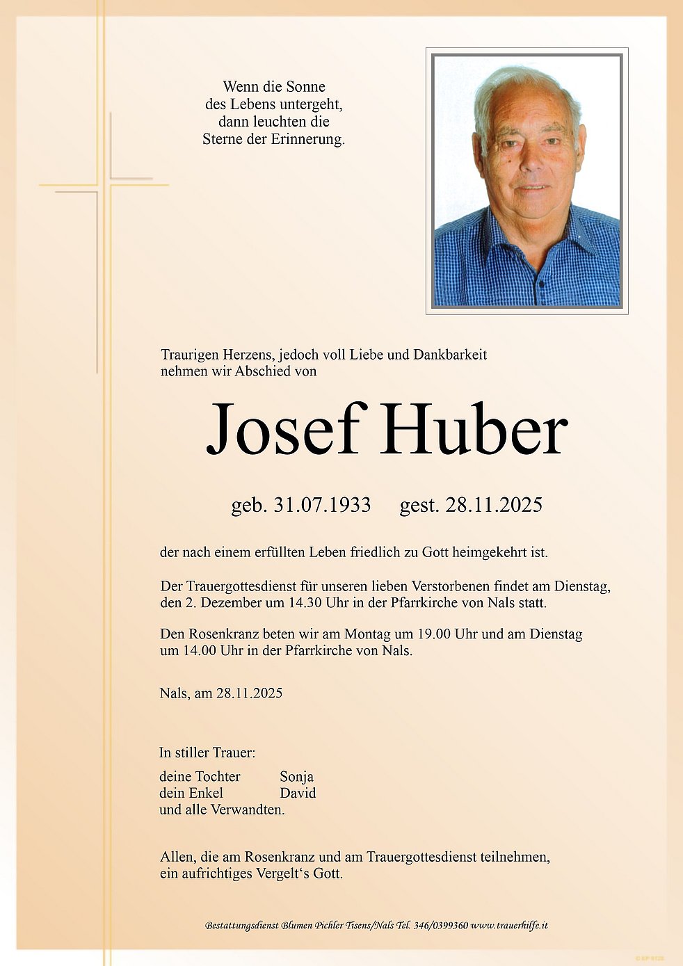 Trauerfeier: 02.12. - 14:30 Uhr Pfarrkirche Nals