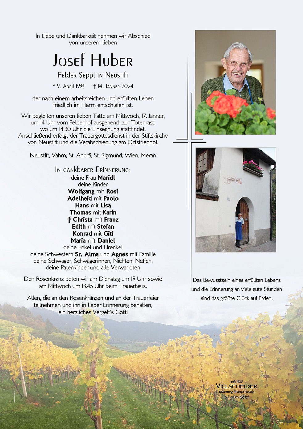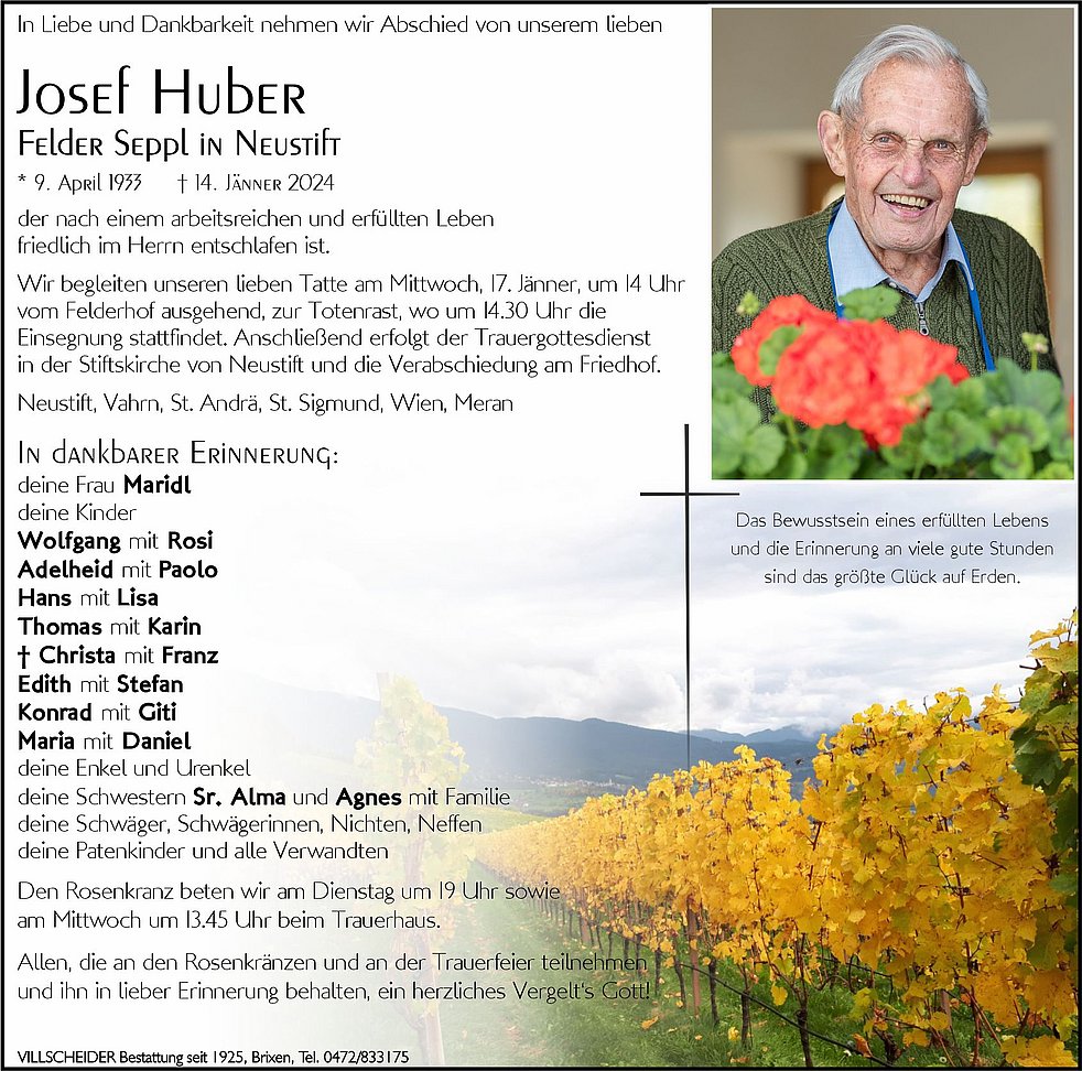 Trauerfeier: 17.01. - 14:30 Uhr Neustift