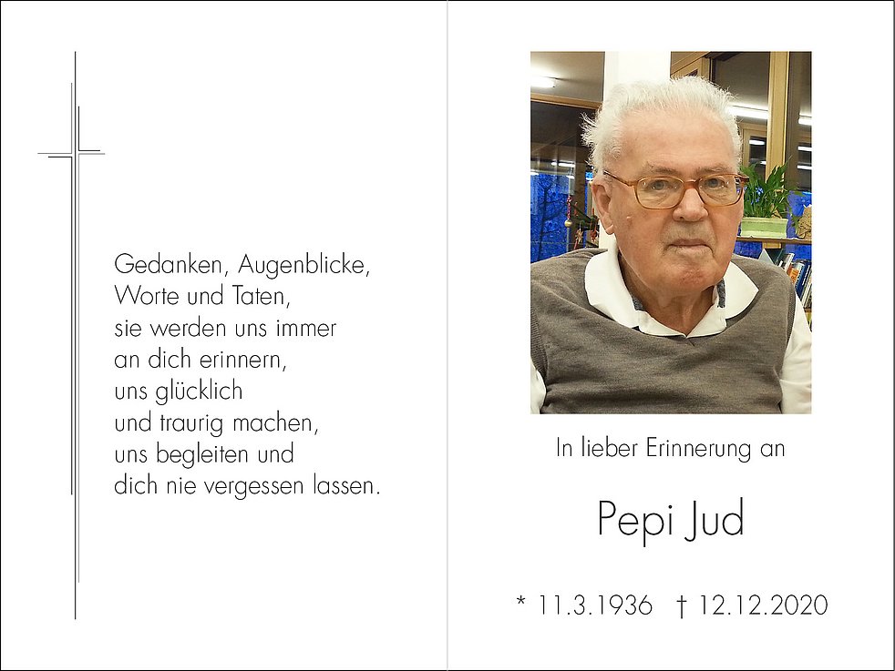 Unendlich traurig, aber dankbar für die schöne gemeinsame Zeit, nehmen wir Abschied von meinem lieben Pepi, unserem guten Papi, geliebten Opa, Schwiegervater, Schwager, Onkel und Paten, Herrn