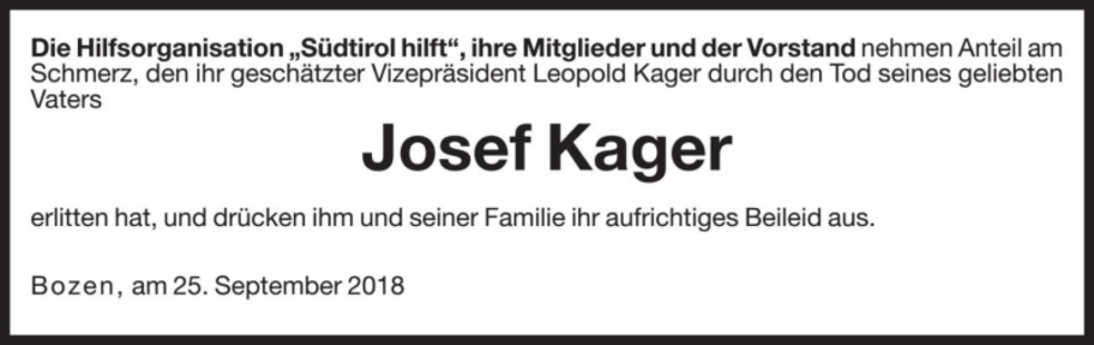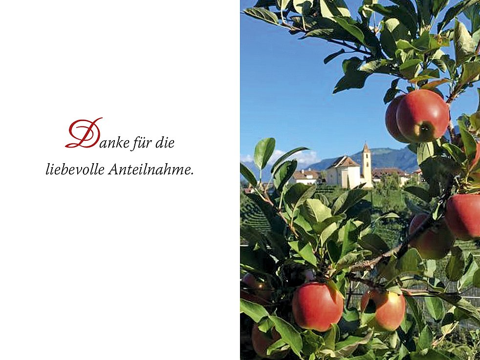 Im Sinne des Verstorbenen möge man für den bäuerlichen Notstandsfond Raiffeisen Landesbank IBAN IT30 D 03493 11600 000300011231 spenden.