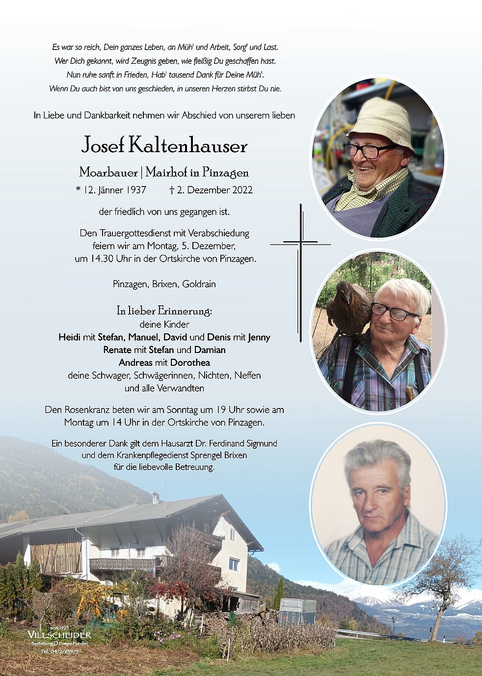 Wir danken ihm für seinen Dienst am Nächsten und drücken der gesamten Familie Kaltenhauser unser herzliches Beileid aus.