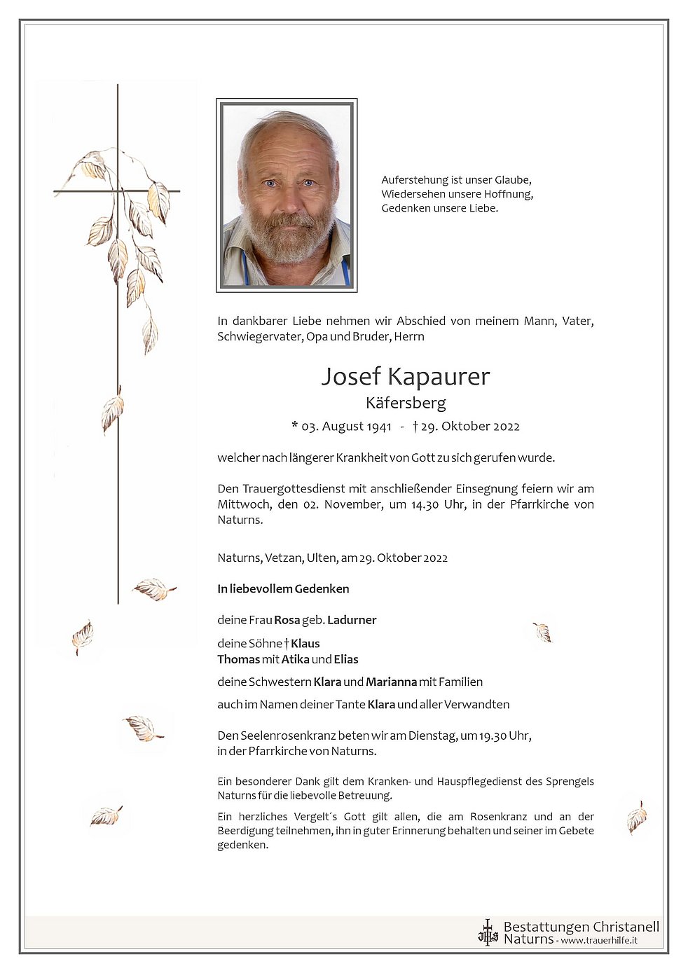 Den Trauergottesdienst mit anschließender Einsegnung feiern wir am Mittwoch, den 02. November, um 14.30 Uhr, in der Pfarrkirche von Naturns.