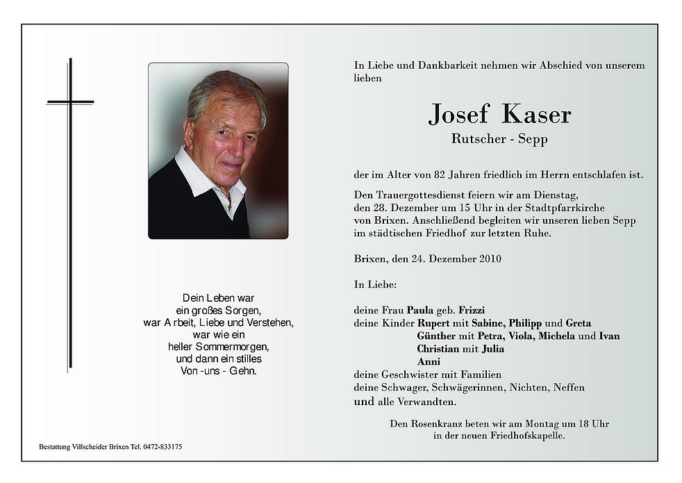 von Brixen. Anschließend begleiten wir unseren lieben Sepp im städtischen Friedhof zur letzten Ruhe.