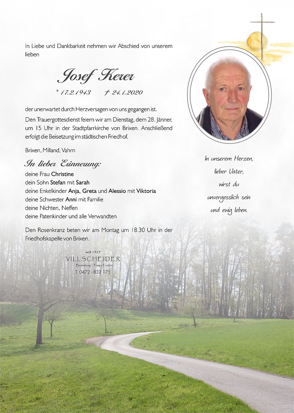 Begräbnisgottesdienst: 28.01. - 15:00 Uhr BRIXEN
