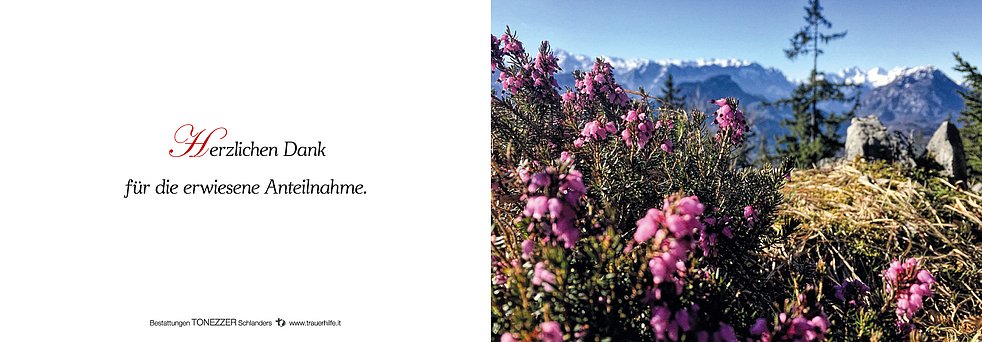 Ein besonderer Dank gilt Frau Dr. Susanne Pragal und dem gesamten Team von der Abteilung Day Hospital sowie den Ärzten und dem gesamten Pflegepersonal des Krankenhauses von Schlanders für die liebevolle und fürsorgliche Betreuung.