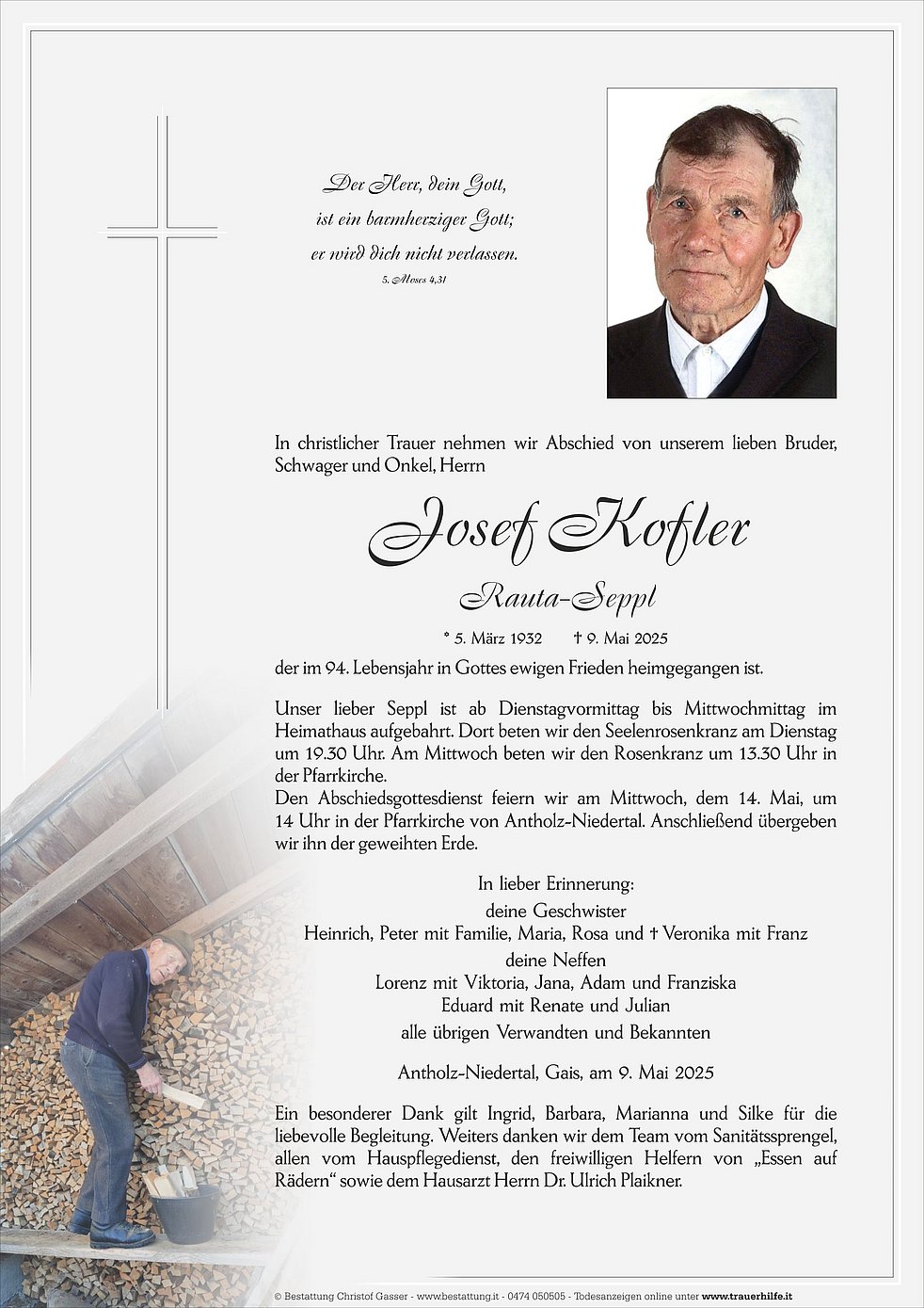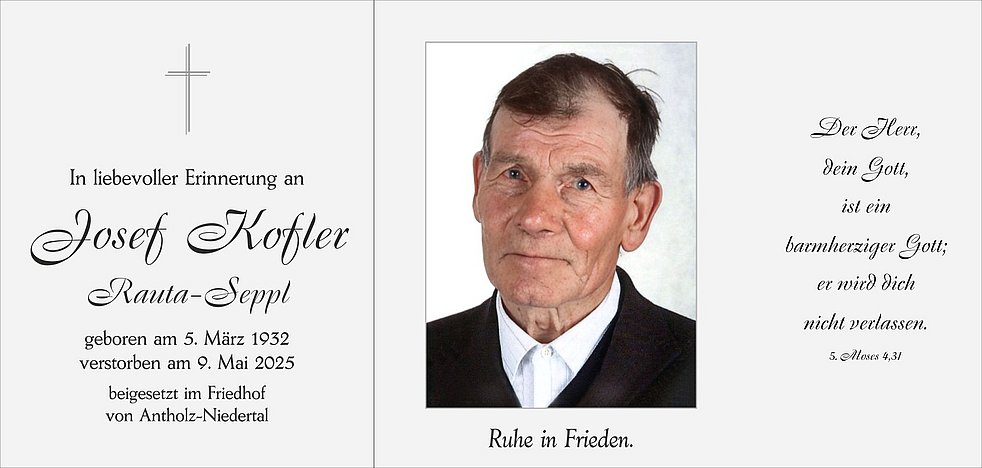 Unser lieber Seppl ist ab Dienstagvormittag bis Mittwochmittag im Heimathaus aufgebahrt. Dort beten wir den Seelenrosenkranz am Dienstag um 19.30 Uhr. Am Mittwoch beten wir den Rosenkranz um 13.30 Uhr in der Pfarrkirche.