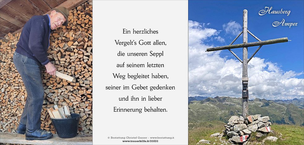 Den Abschiedsgottesdienst feiern wir am Mittwoch, dem 14. Mai, um 14 Uhr in der Pfarrkirche von Antholz-Niedertal. Anschließend übergeben wir ihn der geweihten Erde.