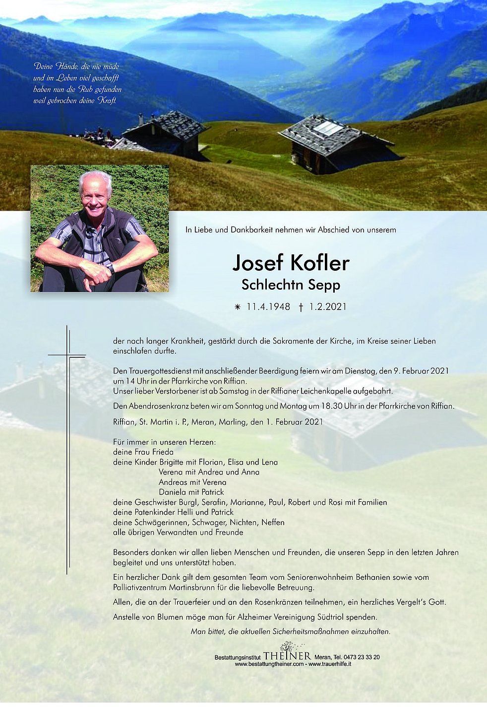 Besonders danken wir allen lieben Menschen und Freunden, die unseren Sepp in den letzten Jahren begleitet und uns unterstützt haben.