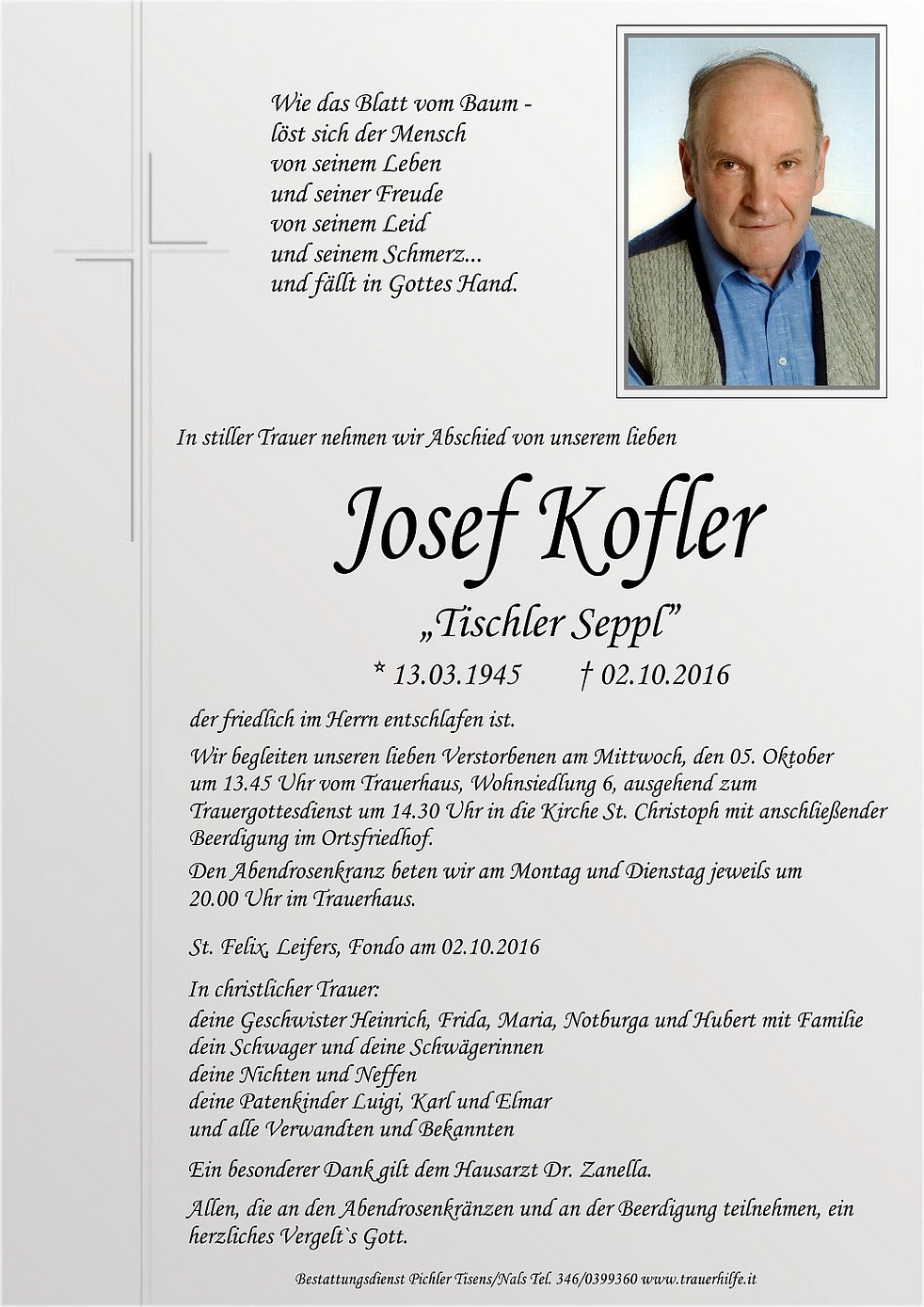 Trauergottesdienst um 14.30 Uhr in die Kirche St. Christoph mit anschließender