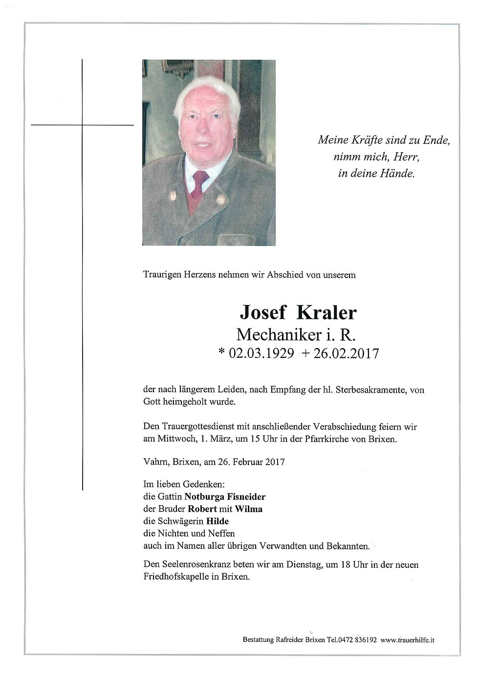 Den Trauergottesdienst mit anschließender Verabschiedung feiern wir am Mittwoch, 1. März, um 15 Uhr in der Pfarrkirche von Brixen.