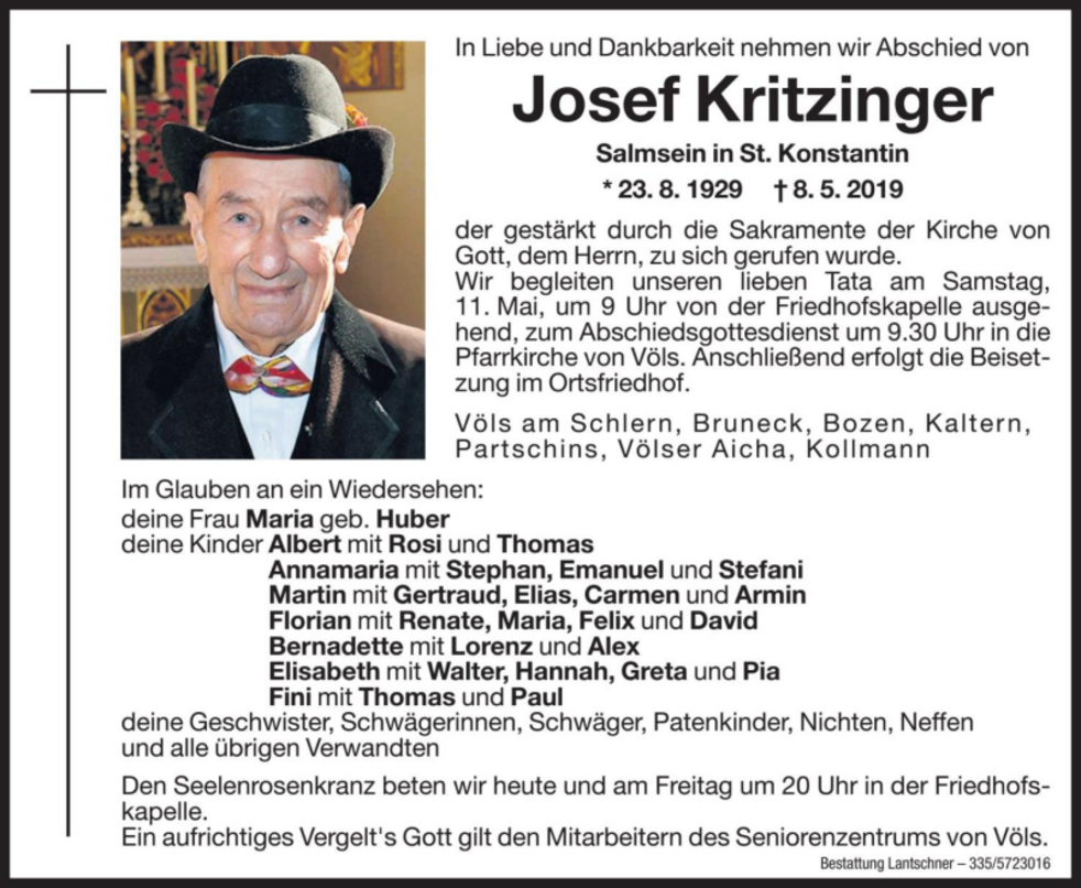 Wir begleiten unseren lieben Tata am Samstag, 11. Mai um 9 Uhr von der Friedhofskapelle