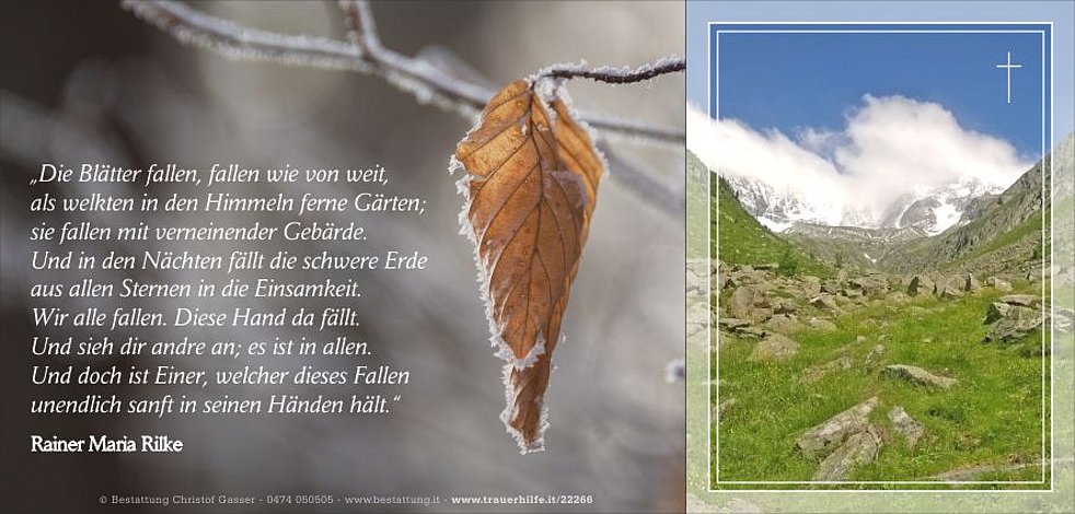 Ein herzliches Vergelt’s Gott gilt der Hausärztin Frau Dr.in Alea Innerbichler und der Pflegerin Tetyana für die liebevolle Betreuung und Begleitung.