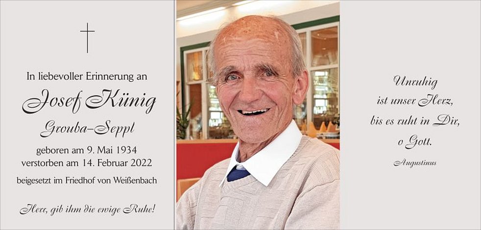 Den Trauergottesdienst feiern wir am Donnerstag, dem 17. Februar, um 14.30 Uhr in der Pfarrkirche von Weißenbach.