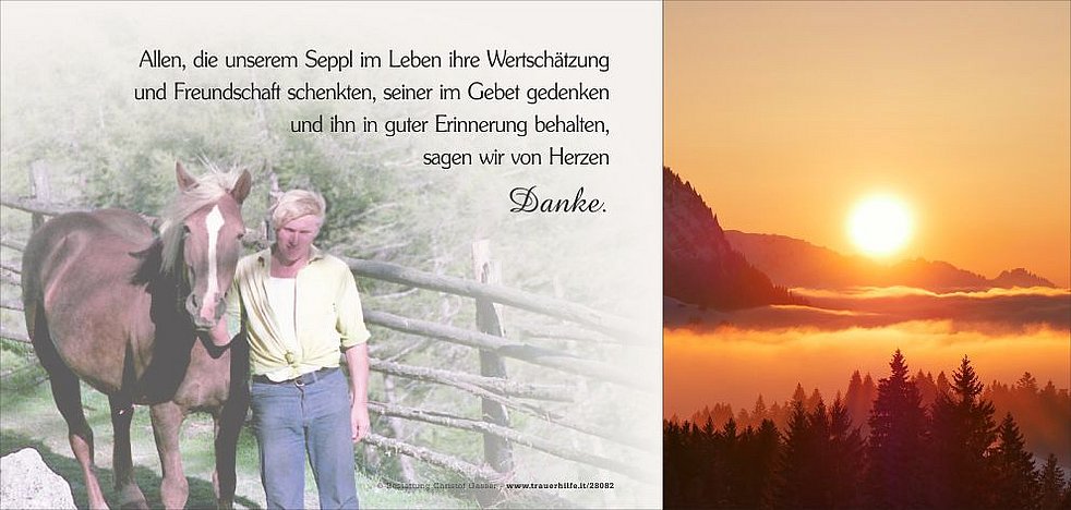 Unser lieber Seppl ist ab Donnerstagnachmittag in der Auferstehungskapelle von Gais aufgebahrt.
