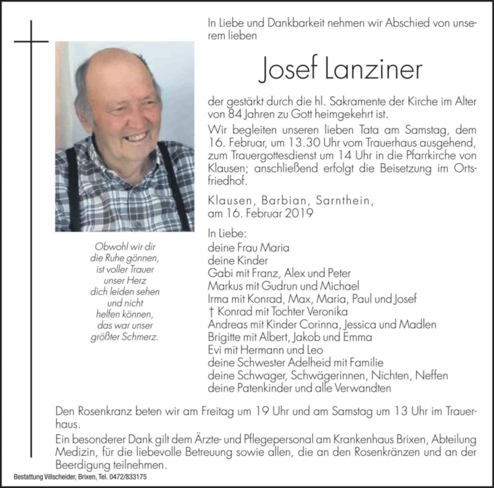 Begräbnisgottesdienst: 16.02. - 14:00 Uhr KLAUSEN