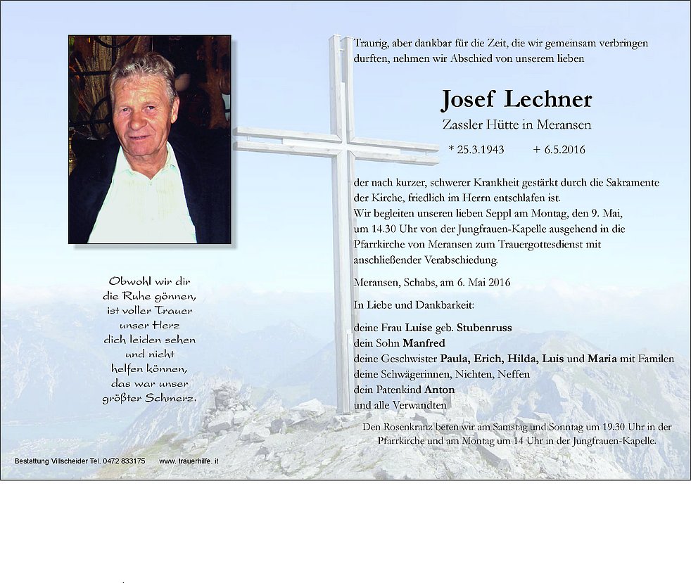 Wir begleiten unseren lieben Seppl am Montag, den 9. Mai,