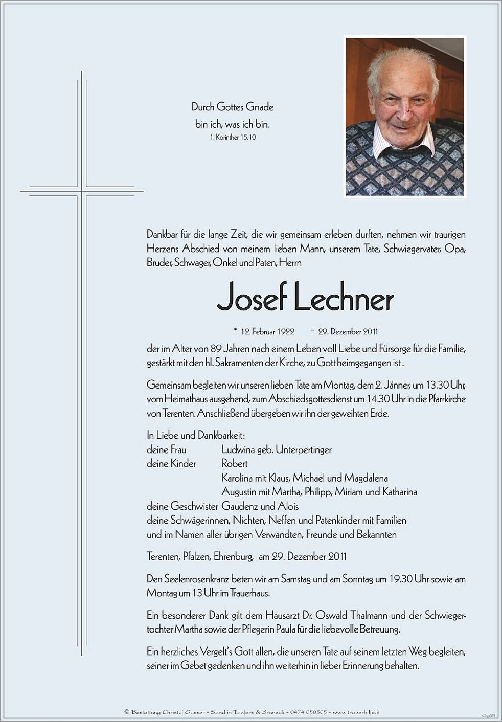 der im Alter von 89 Jahren nach einem Leben voll Liebe und Fürsorge für die Familie, gestärkt mit den hl. Sakramenten der Kirche, zu Gott heimgegangen ist .