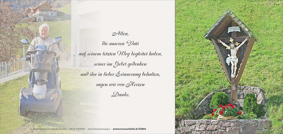 Unser Vati ist ab Freitagnachmittag in der Friedhofskapelle von Onach aufgebahrt.