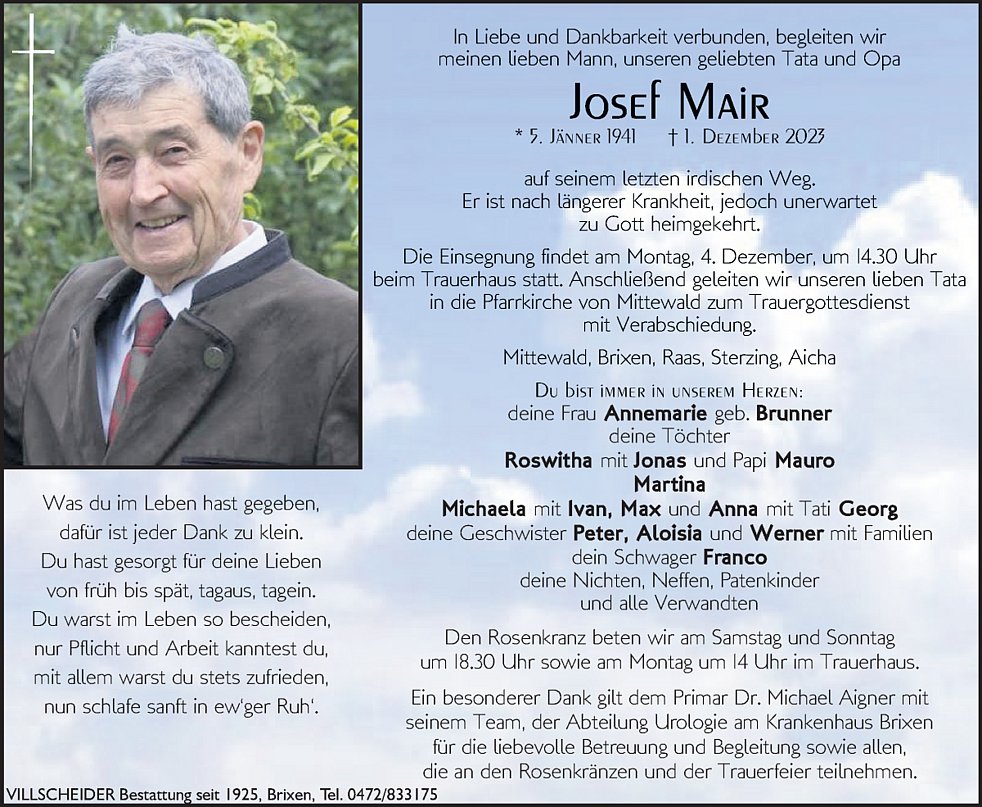 Wegen des plötzlichen Todes Deines lieben Mannes begleiten wir Dich alle in Gedanken im großen Schmerz, -
