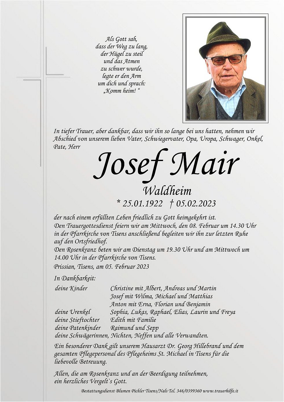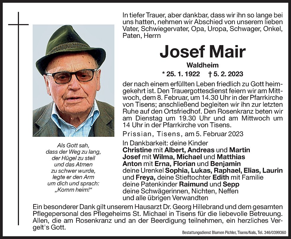 in der Pfarrkirche von Tisens anschließend begleiten wir ihn zur letzten Ruhe