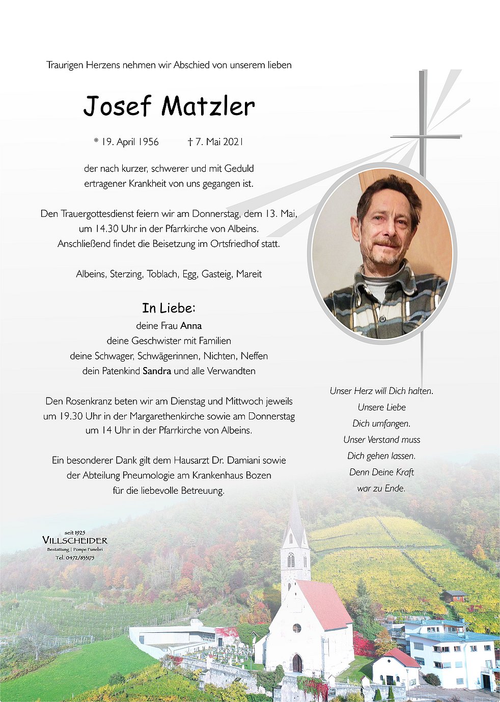 Leider hast du uns viel zu früh verlassen .Möge der Herrgott dich beschützen.Du fehlst uns sehr .Ruhe in Frieden Josef