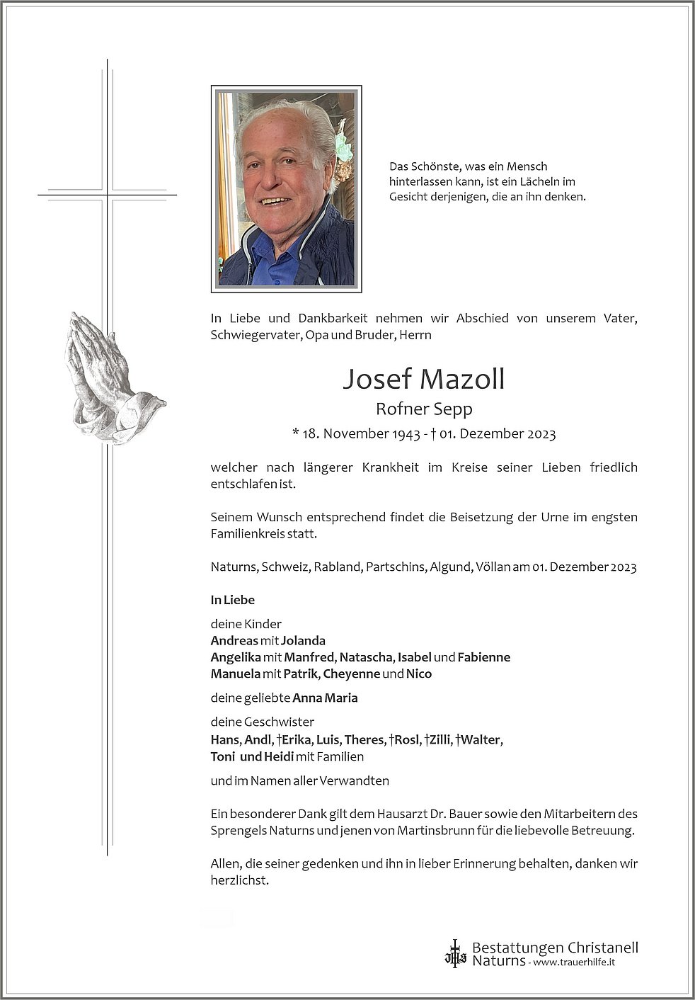 Zum Verfassen von Kondolenzen müssen Sie sich in Ihr TrauerHilfe.it Profil einloggen.