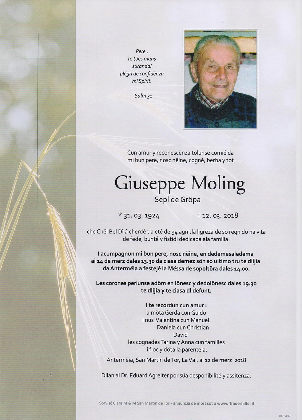 im Alter von 94 Jahren friedlich in Gott, dem Herrn, entschlafen ist.