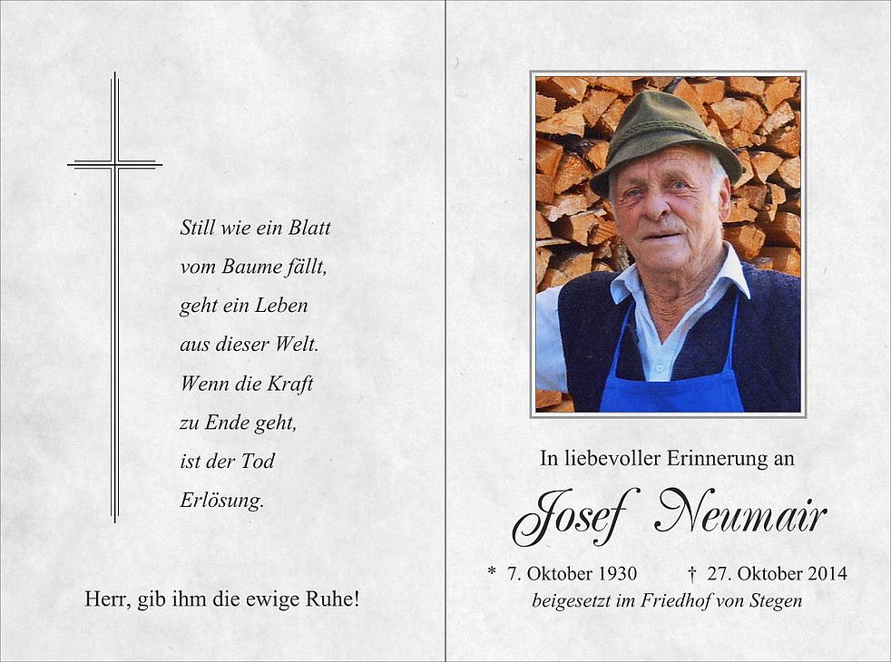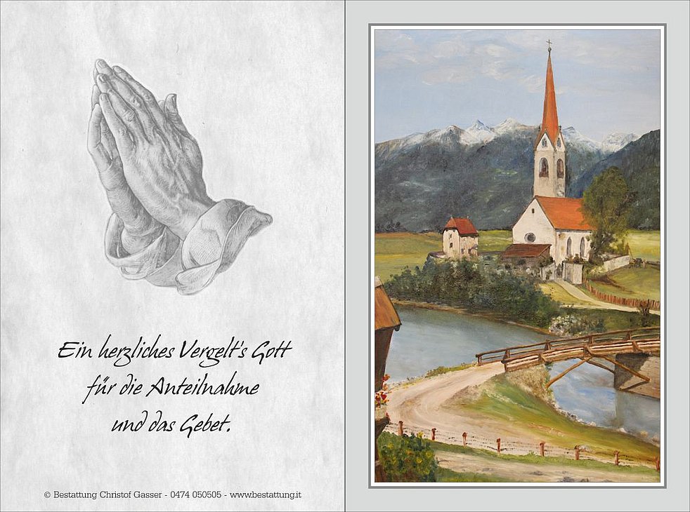 Vergelt‘s Gott allen, die an den Seelenrosenkränzen und an der Beerdigung von unserem lieben Tate teilnehmen und ihn in guter Erinnerung behalten.