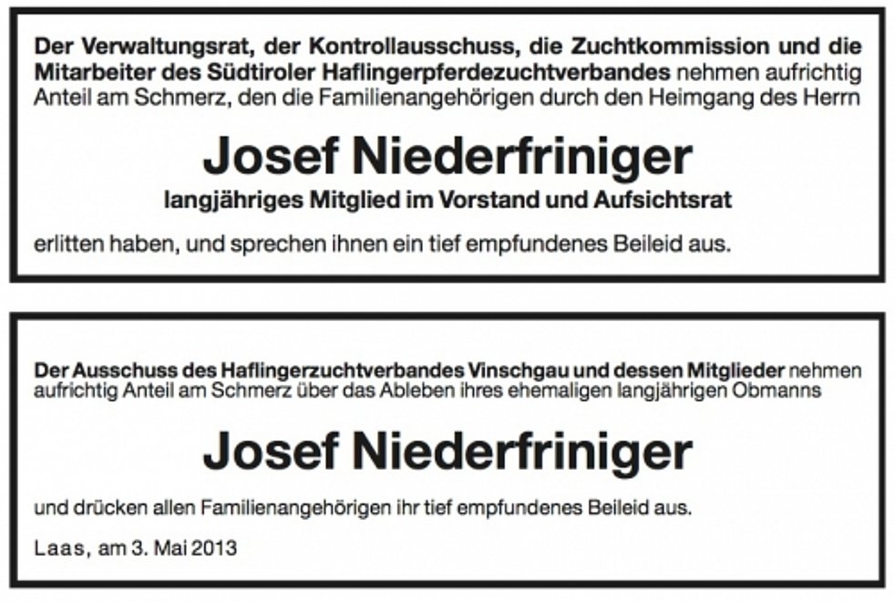 Niederfriniger Elfriede Bernhard Elias Raphael