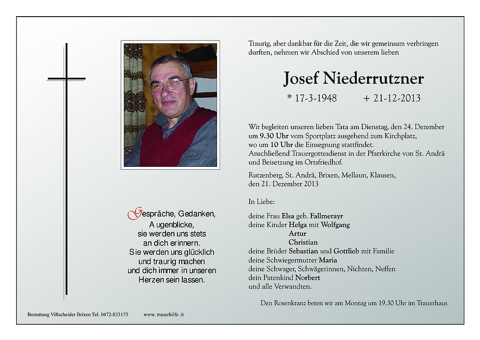 Wir begleiten unseren lieben Tata am Dienstag, den 24. Dezember