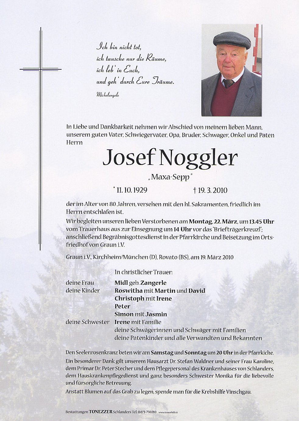 Wir begleiten unseren lieben Verstorbenen am Montag, 22. März, um 13.45 Uhr vom Trauerhaus aus zur Einsegnung um 14 Uhr vor das "Briefträgerkreuzl";
