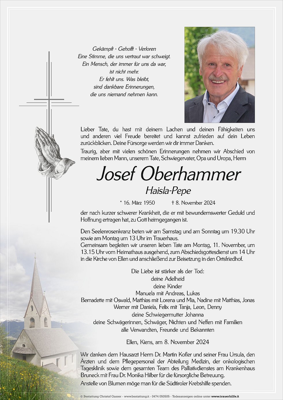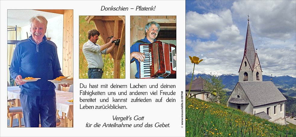 Anstelle von Blumen möge man für die Südtiroler Krebshilfe spenden.