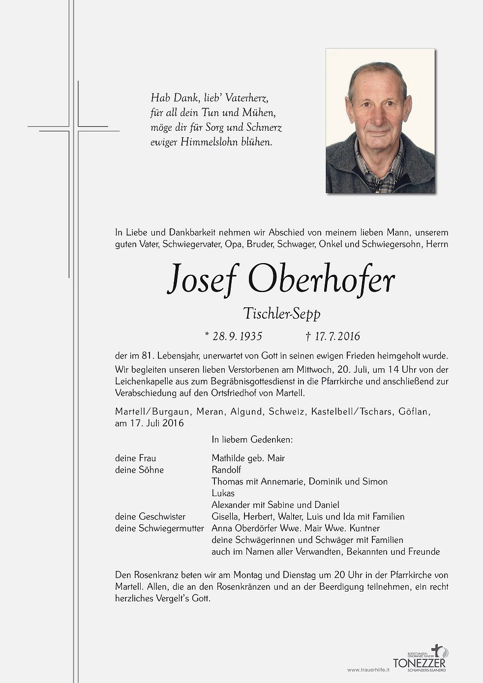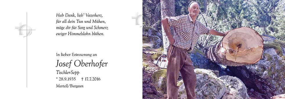 Wir begleiten unseren lieben Verstorbenen am Mittwoch, 20. Juli, um 14 Uhr von der Leichenkapelle aus zum Begräbnisgottesdienst in die Pfarrkirche und anschließend zur Verabschiedung auf den Ortsfriedhof von Martell.