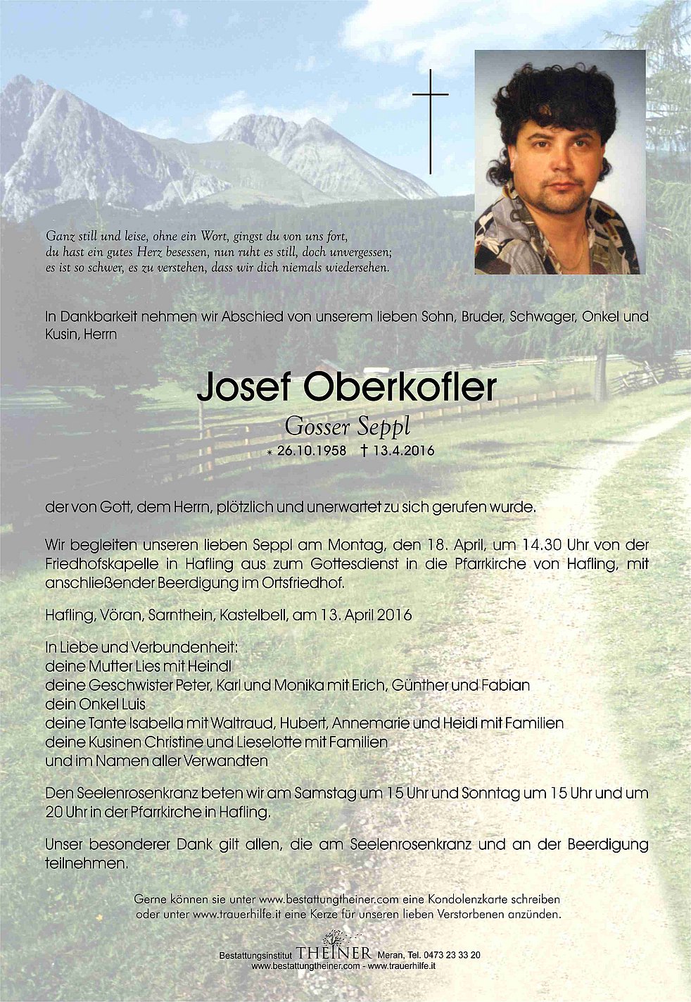 Wir begleiten unseren lieben Seppl am Montag, den 18. April, um 14.30 Uhr von der