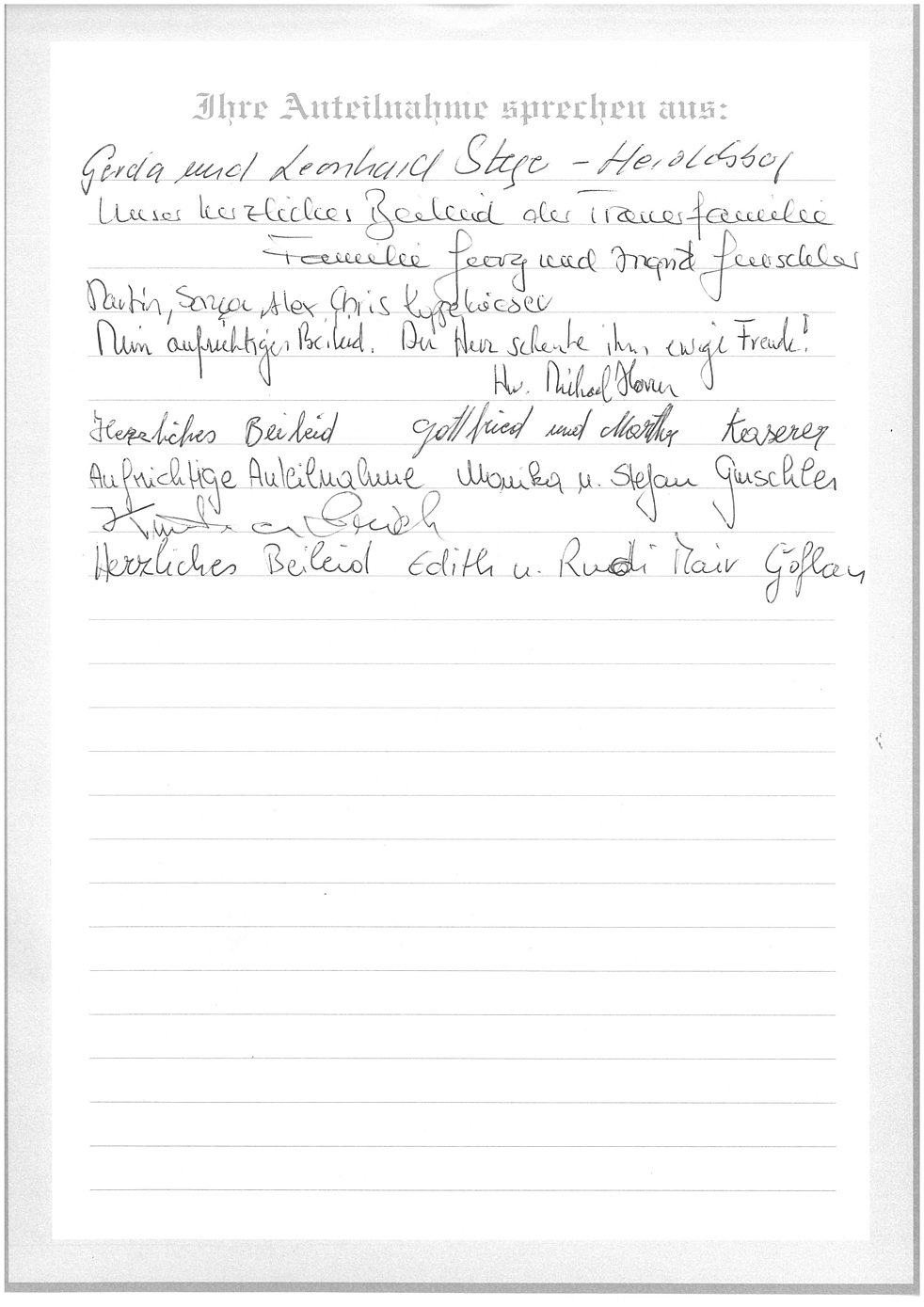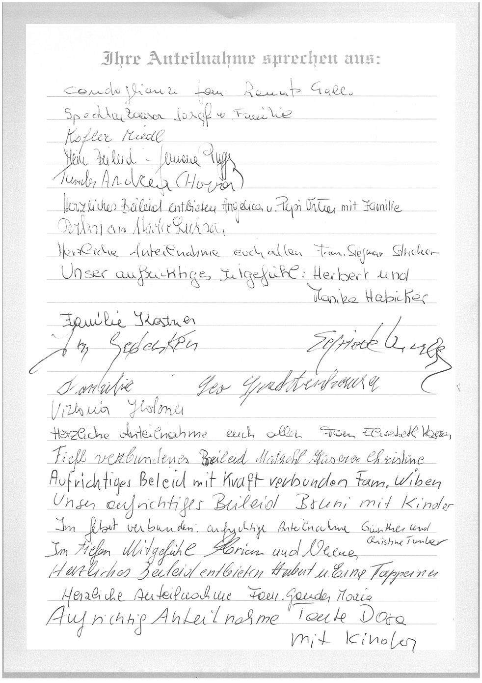 tief berührt möchten wir euch unser aufrichtiges Mitgefühl und unsere Anteilnahme übermitteln.