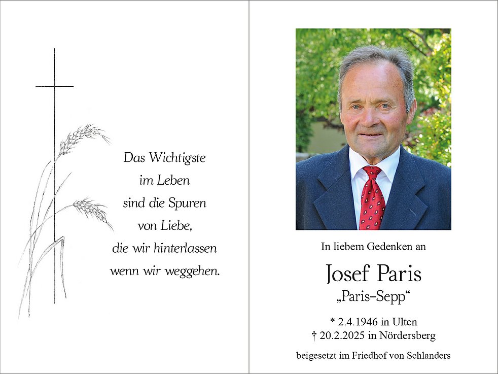 Die Dankbarkeit, den geliebten Menschen weiter in Erinnerug zu haben, schenke dir ein Stück weit Trost und stärke dich für den weiteren Weg. Möge Josef wie ein leuchtender Stern in deinem Herzen bleiben.