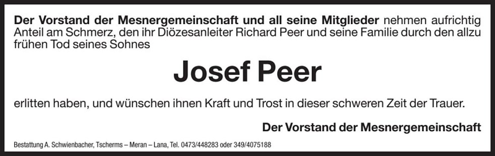 Anstatt Blumen auf das Grab zu legen, möge man für die Südt. Krebshilfe oder die Vinzenzkonferenz Brixen spenden.