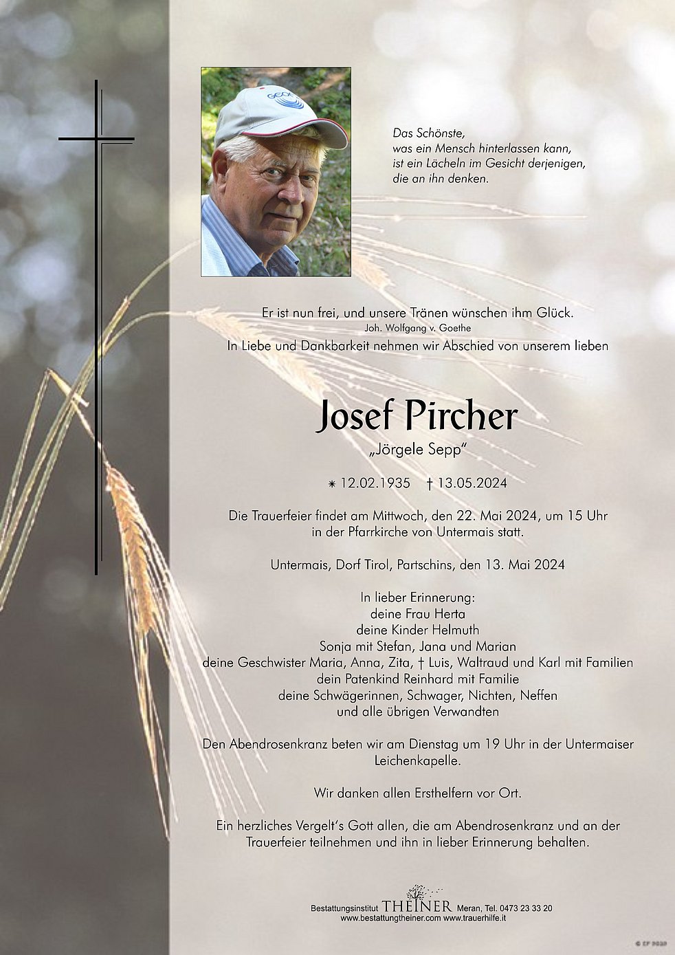 Die Trauerfeier findet am Mittwoch, den 22. Mai 2024, um 15 Uhr in der Pfarrkirche von Untermais statt.