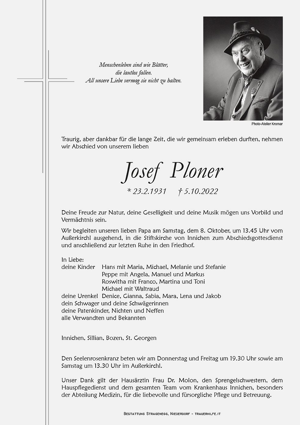 Wir begleiten unseren lieben Papa am Samstag, dem 8. Oktober, um 13.45 Uhr vom Außerkirchl ausgehend, in die Stiftskirche von Innichen zum Abschiedsgottesdienst und anschließend zur letzten Ruhe in den Friedhof.