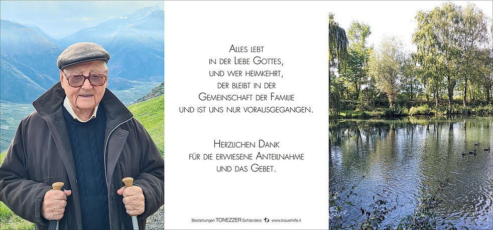Unser lieber Vater ist ab Dienstag, 30. April, in der Friedhofskapelle von Latsch aufgebahrt.