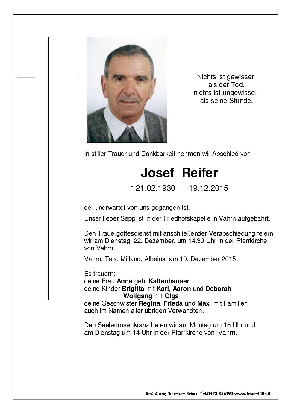 Unser lieber Sepp ist in der Friedhofskapelle in Vahrn aufgebahrt.