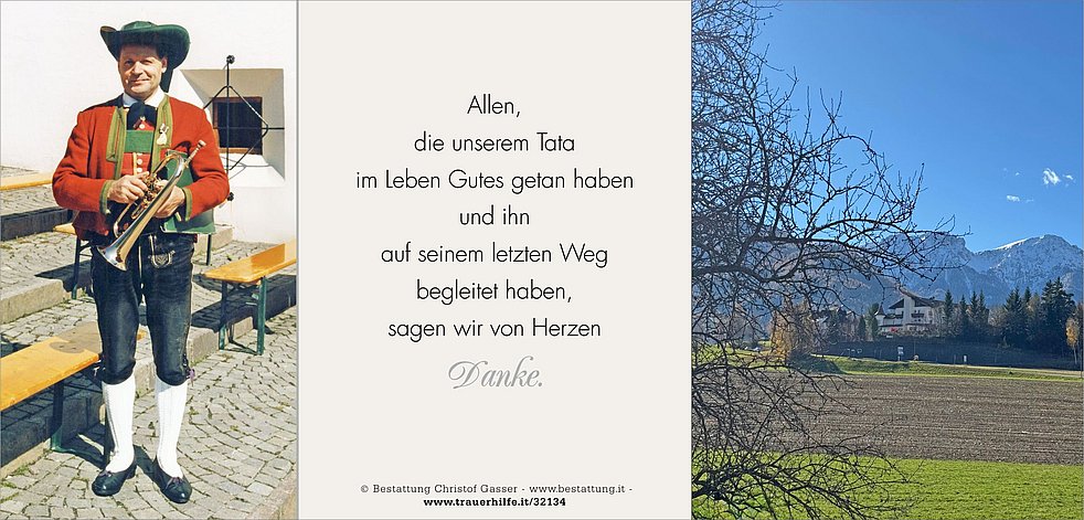 Ein besonderer Dank gilt dem Hausarzt Herrn Dr. Ulrich Plaikner und dem Team vom Hauskrankenpflegedienst für die liebevolle Begleitung.