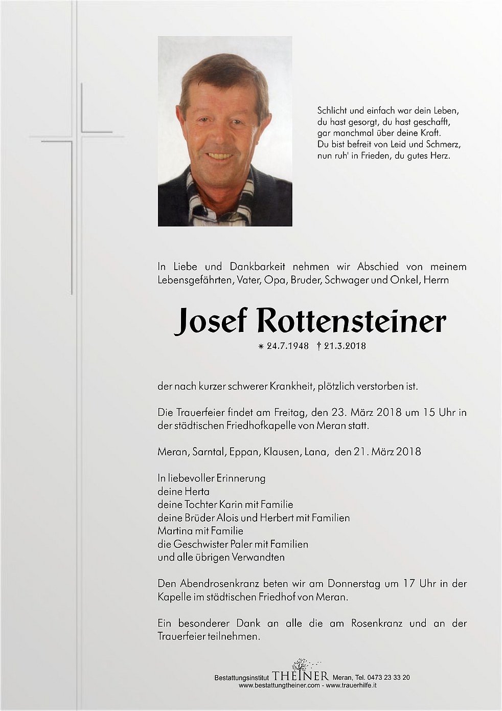 Die Trauerfeier findet am Freitag, den 23. März 2018 um 15 Uhr in der städtischen Friedhofkapelle von Meran statt.
